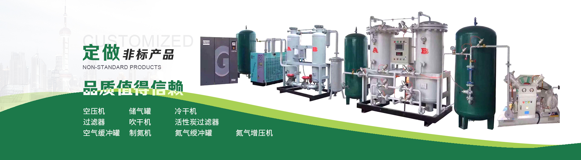 本企業(yè)產(chǎn)品有眾多產(chǎn)品分類,儲氣罐、磨料桶、碳鋼儲氣罐、不銹鋼儲氣罐、中高壓儲氣罐、臥式儲氣罐、緩沖罐、隔膜罐、噴砂罐、分氣缸、以及其他的定做非標(biāo)產(chǎn)品等,產(chǎn)品廣泛應(yīng)用于化工、制藥、橡膠、石油、食品、機械等行業(yè)。